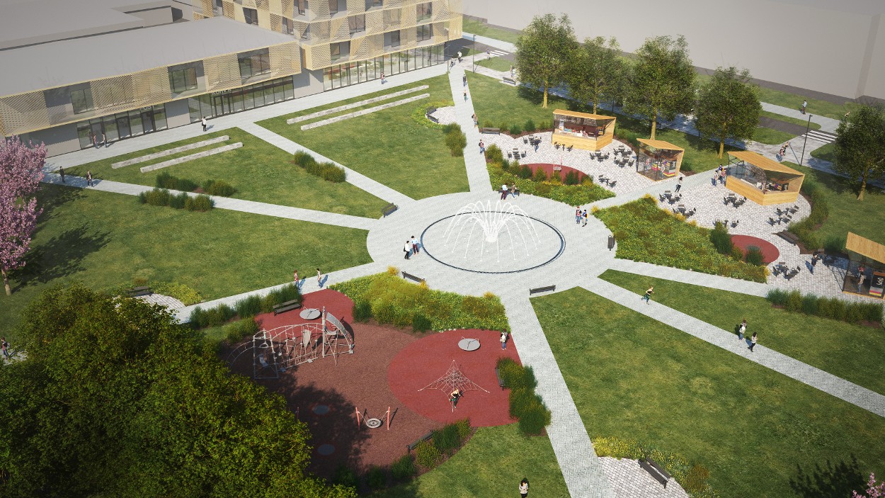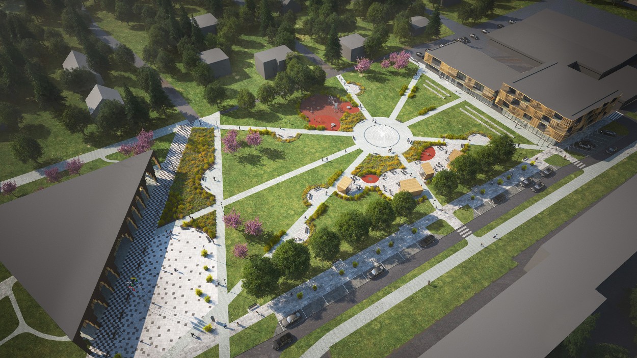 Plaanis on Keskuse pargi uuendamine: purskkaev, paviljonid, mänguplatsid, lipuväljak.