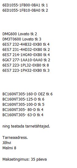 Hange elektrikomponentide ostmiseks. Tähtaeg 18. aprill.