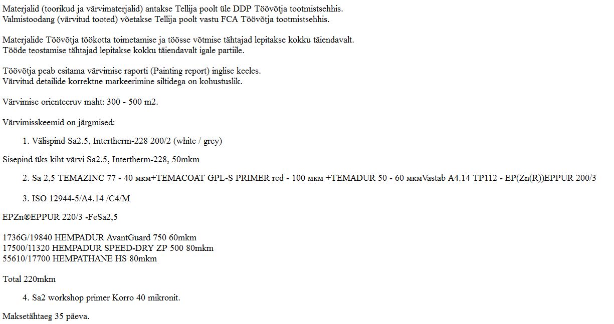 Enefit Solutions AS kuulutab välja hanke metallkonstruktsioonide värvimise teenuse ostmiseks perioodil lepingu sõlmimisest kuni 15.03.2017. Sõlmitakse raamleping kuni 500 m² värvimiseks tellija materjalist.