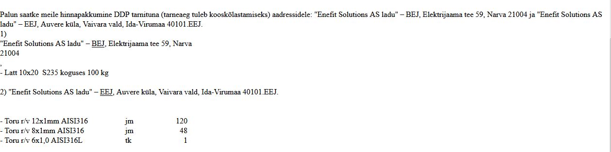 Eesti Energia Tehnoloogiatööstus AS ootab hinnapakkumist metalli ostmiseks tarnituna DDP Jõhvi: