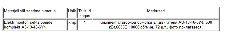 Hange elektrimootori ankru sektsioonide ostmiseks. Tähtaeg 12. jaanuar.