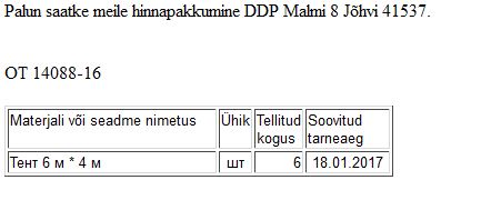 Hankel osalemiseks tuleb esitada pakkumus hiljemalt 12.01.2017 kell 14:30 (UTC+02:00).