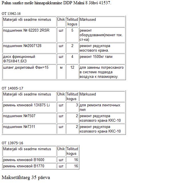 Enefit Solutions AS kuulutab välja hanke laagrite ja rihmade ostmiseks.