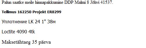 Hange tihendite ja liimide ostmiseks. Tähtaeg 30. jaanuar.