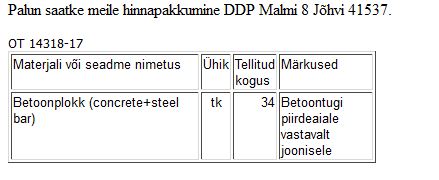Hange betoonplokkide ostmiseks. Tähtaeg 22. veebruar.