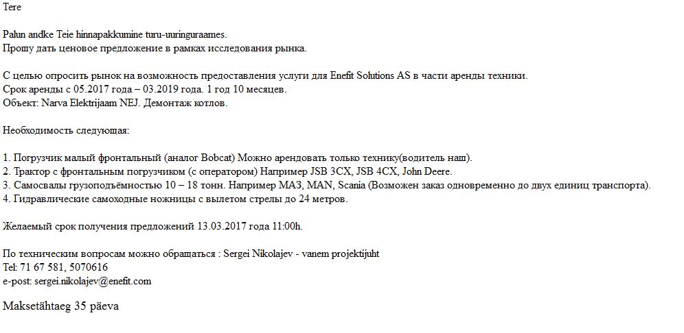 Hankel osalemiseks tuleb esitada pakkumus hiljemalt 13.03.2017 kell 11:00 (UTC+02:00).
