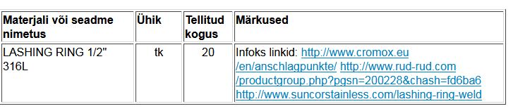 Hange keevitatavate D-aasade ostmiseks. Tähtaeg 17. märts.