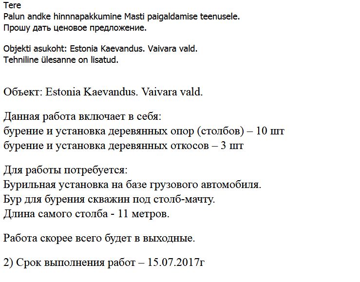 Pakkumus tuleb esitada Hankijale üksnes elektronkirjaga kuni 12.07.2017 kell 13:00.