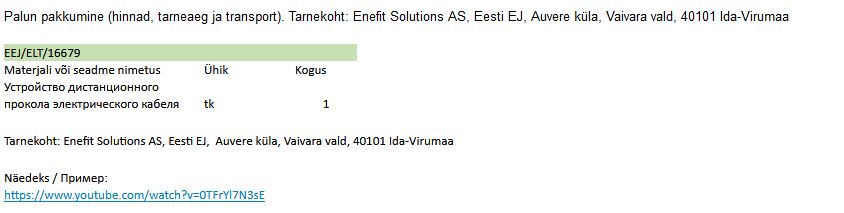 Enefit Solutions AS kuulutab välja hanke kaablikingade ostmiseks.