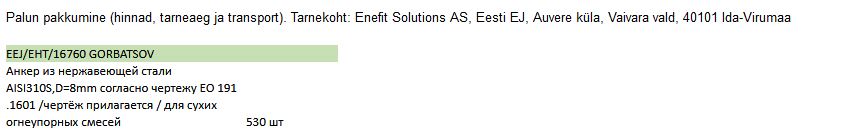Enefit Solutions AS kuulutab välja hanke RV ankurite ostmiseks.