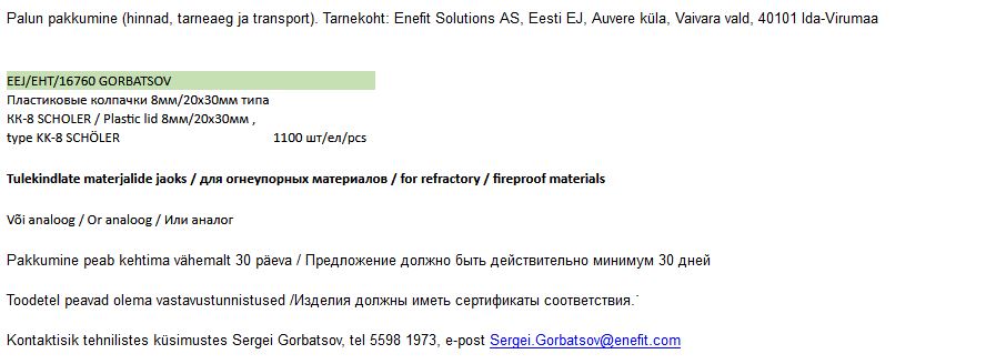 Enefit Solutions AS kuulutab välja hanke plastist korkide ostmiseks.
