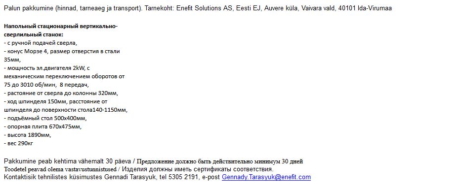 Hange põranda puurimismasina ostmiseks. Tähtaeg 6. november.