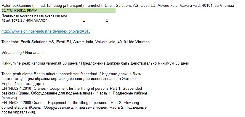 Enefit Solutions AS kuulutab välja hanke tõstekorvi ostmiseks.