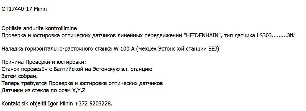 Hange optiliste andurite kontrollimiseks. Tähtaeg 27. oktoober.