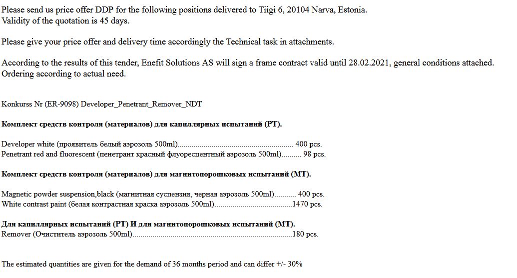 Enefit Solutions AS kuulutab välja hanke materjalide komplekti ostmiseks kapillaarsete katsetuste läbiviimise raamlepingu sõlmimiseks.