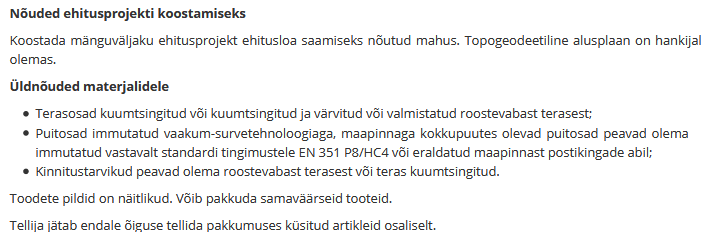 Hange välitreeningväljaku projekteerimiseks ja ehituseks. Tähtaeg 8. oktoober.