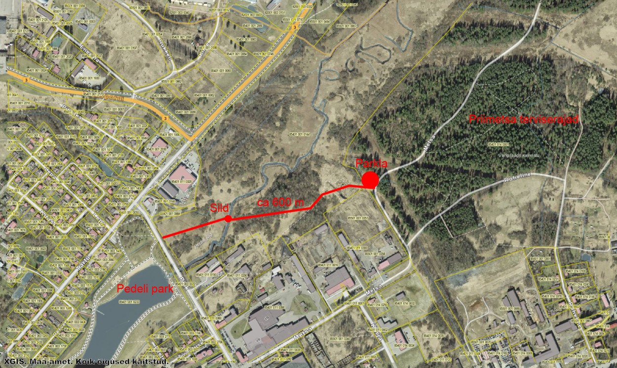 Valga Vallavalitsuse hange Pedeli ja Priimetsa terviseradasid ühendava kergliiklustee põhiprojekti koostamiseks.
