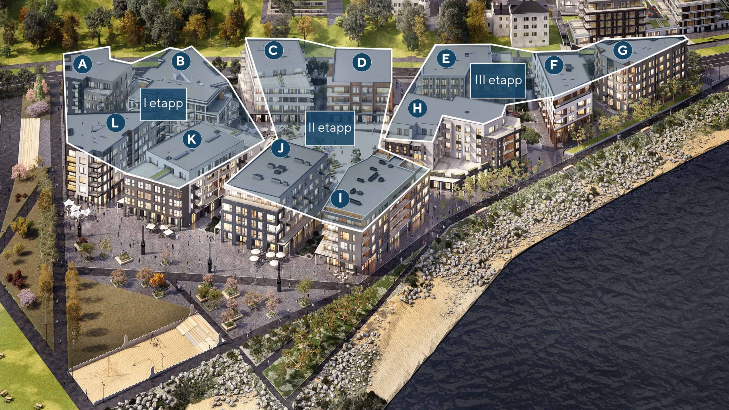 Kalaranna Kvartali esimesed 8 hoonet on saavutanud oma täiskõrguse. Kinnistule valmib käimasoleva ehitusetapi käigus 8 maja, hooneid ühendav linnaväljak ning Kalaranna pargiala. Samuti korrastatakse sadama- ning rannaala, kus suuresti säilib olemasolev looduskeskkond. Kvartal on planeeritud autovaba linnaruumina, kus parkimine on täielikult maa all.